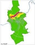 - Carte de type a : Zones exposées au bruit à l'aide de courbes isophones, ces courbes sont tracées au dessus de 55 dB(A) en Lden et 50 dB(A) en Ln.