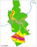 - Carte de type a : Zones exposées au bruit à l'aide de courbes isophones, ces courbes sont tracées au dessus de 55 dB(A) en Lden et 50 dB(A) en Ln.